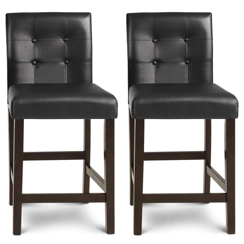 If you are eager to brighten up someplace with a brilliant idea, then why not use our bar stools to effortlessly bring a charming look to your kitchen counter, restaurant or bar? These chairs will give you great satisfaction from stylish design to comfortable sitting. Constructed of high-quality rubber wood, the chairs feature great durability and toughness. The upholstered seat and back will bring extraordinary comfortable experience, and the 4-sided brace bars can not only rest your feet but also plays the role of reinforcement. If you are looking for such a barstool set, this will be your ideal choice!
