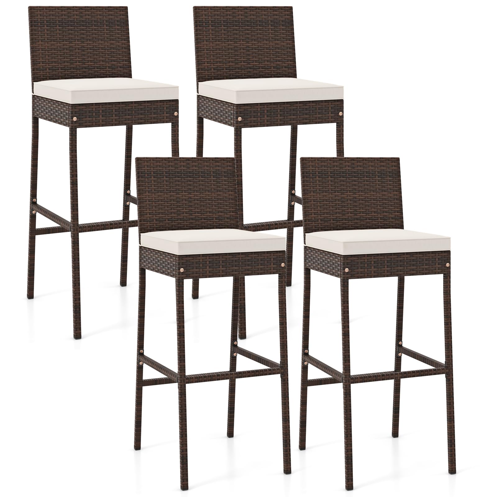Patio Wicker Barstools with Seat Cushion and Footrest