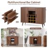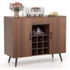 This cupboard features a wide tabletop, 2 door cabinets, a large drawer and a 9-bottole wine rack, which can fully meet your daily storage requirements. Its farmhouse design with good-looking and natural texture makes it surely be a great addition to decorate your room. Besides, crafted with high quality material, this coffee bar cabinet stands out in great durability. Meanwhile, the anti-toppling device provides added safety for your kids. Besides, the tabletop is waterproof and smooth, so it is easy to clean just with a soft cloth.