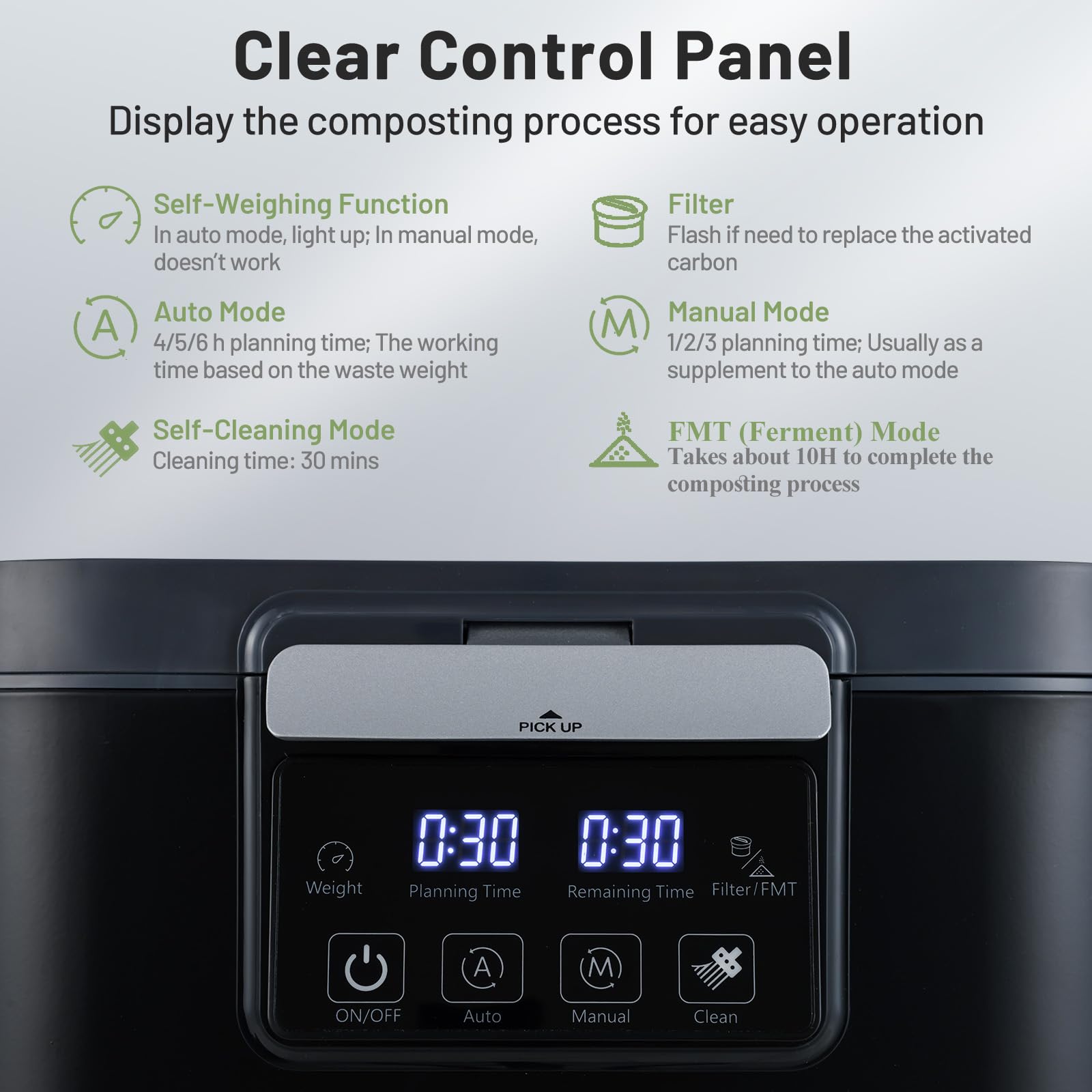 Smart Waste Dispenser Countertop Compost Machine w/Replaceable Filters