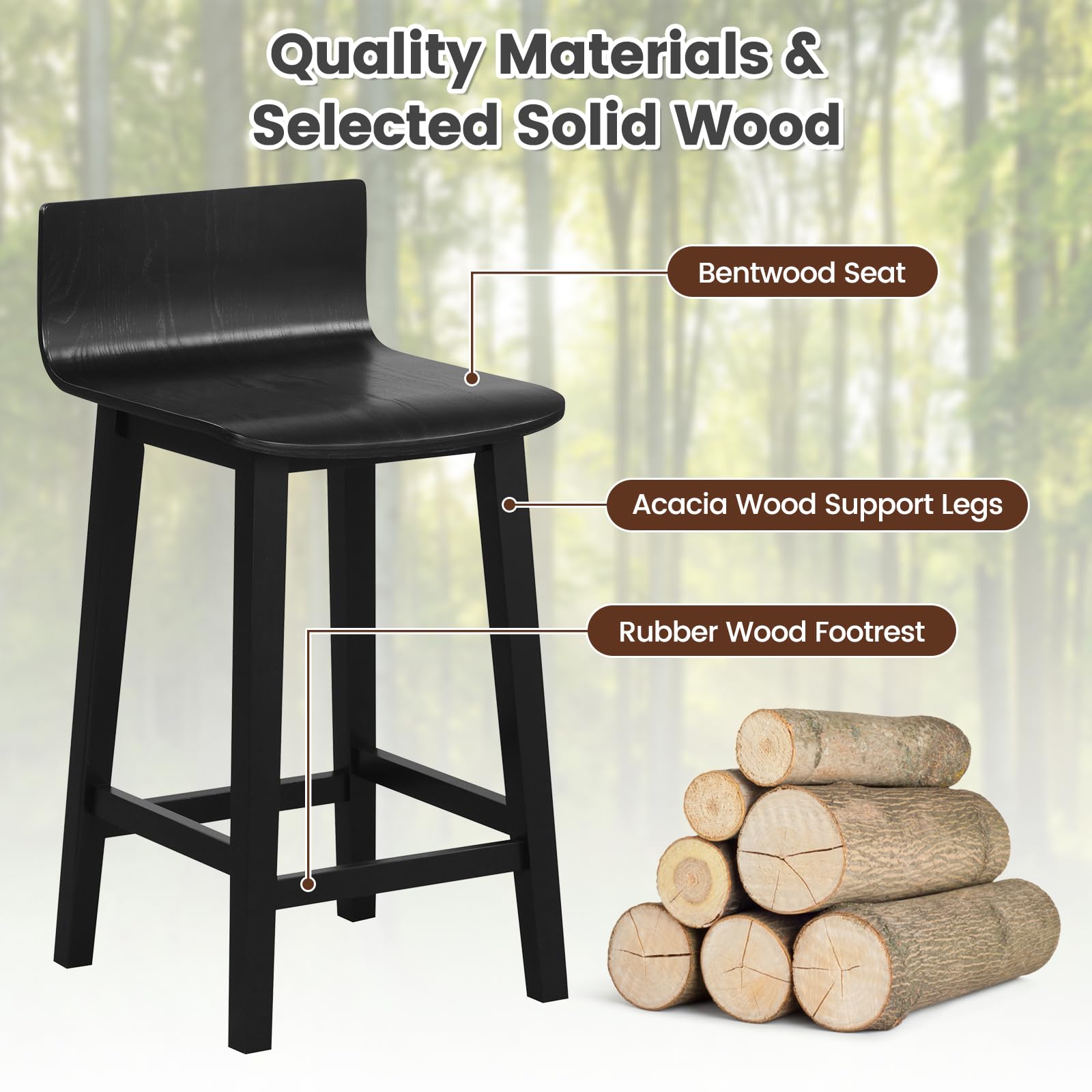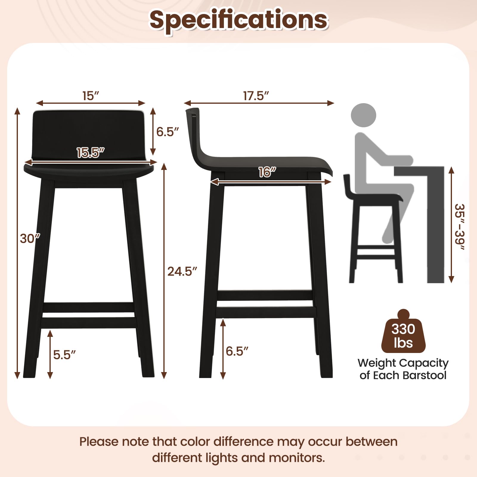Solid Wood Bar Stools Set of 2/4 24.5-inch Counter Height Chairs