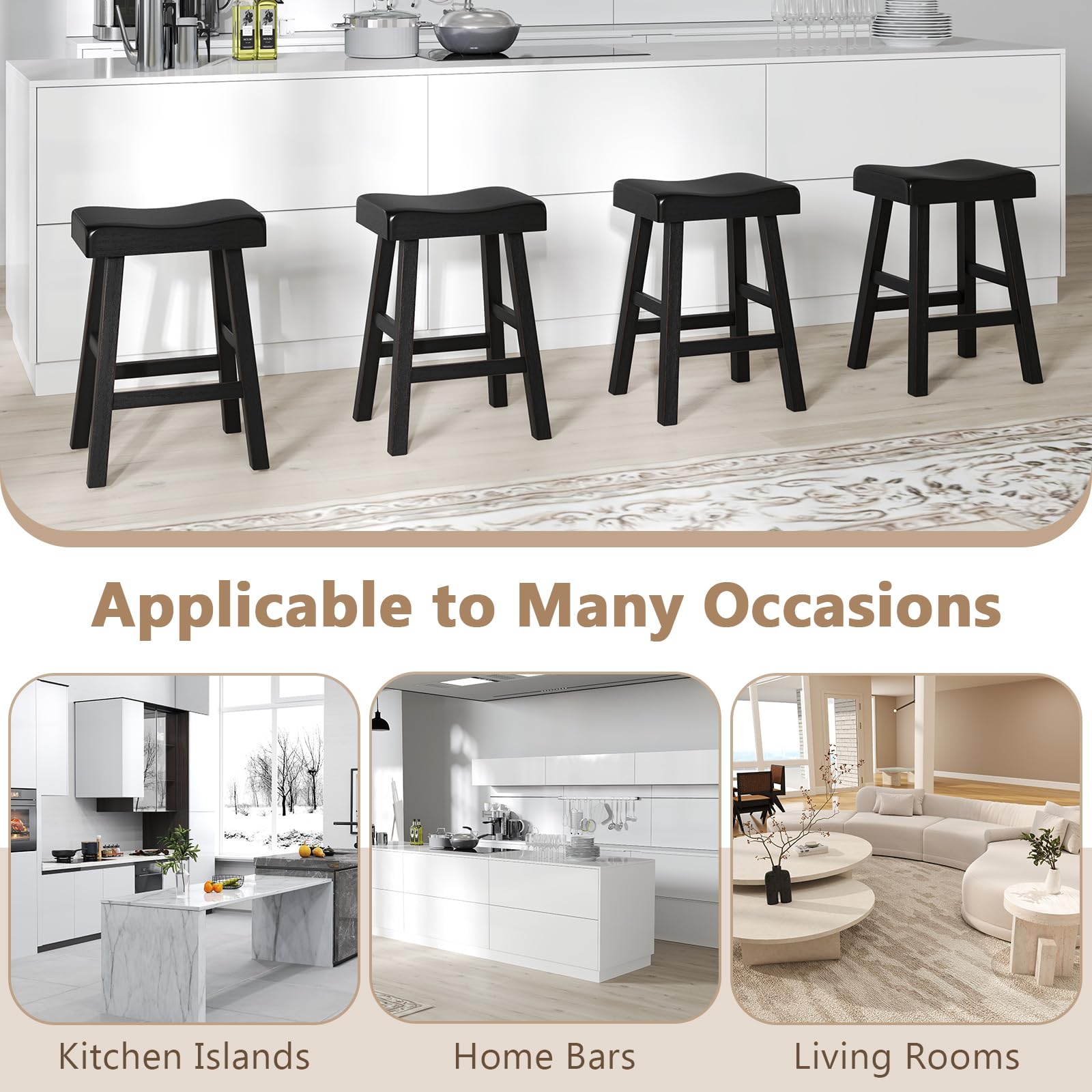 Elevate your living space with this set of 2/4 bar stools, featuring a stylish backless design. Crafted from solid rubber wood and acacia wood, these saddle stools ensure exceptional durability. The ergonomic saddle seat that fits the natural shape of the body, offering optimal support and comfort. The integrated footrest enhances relaxation while enjoying meals or drinks. Ideal for various settings, from kitchen islands to home bars, these versatile bar stools can be conveniently tucked away when not in use, maximizing your space. With easy assembly and maintenance, these kitchen counter stools offer a blend of functionality and elegance, making them a perfect addition to any home decor.