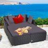 Our rattan daybed is the perfect companion for outdoor relaxation. The spacious space eliminates the worry that tall people will be uncomfortable due to crowding. Armrests and curved backrests add safety while providing strong support to keep you from falling off. The additional 4 throw pillows can be used not only as a headrest but also as a backrest to meet your different needs. Thick cushions are filled with high-density sponges designed to provide long-term comfort. The waterproof cushion with zippers offers great convenience when you want to clean. The selected rattan is weather resistant, which always perform well even outdoors. Besides, aluminum foot pads are durable enough to provide better load bearing of 800 lbs.