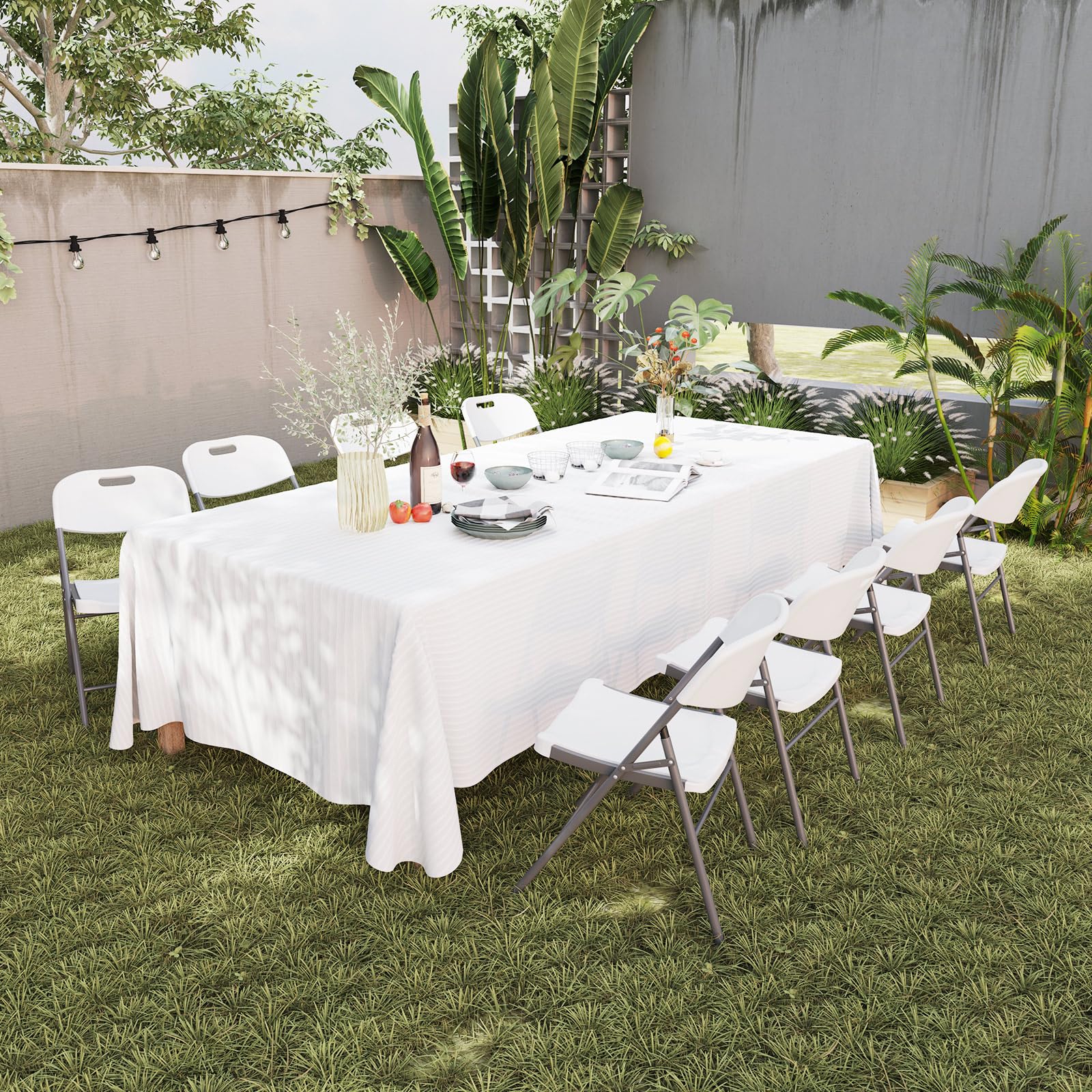 Stackable Plastic Folding Chairs w/Waterproof Seat 350 LBS Capacity Heavy-Duty Metal Frame