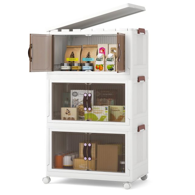 Storage Bins with Lid 6 Tier Stackable Plastic Storage Bins with 4 Wheels