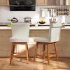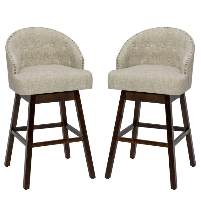 The 360° swivel function allows you to turn in any direction effortlessly, adding flexibility and fun to your seating options. Supported by sturdy rubber wood legs, these bar stools are built to last, ensuring high strength and stability. Experience superior comfort with upholstered linen fabric and sponge-padded seat. Additionally, the ergonomic backrest and integrated footrest offer added support. With a seat height of 27 inches, the bar stools set fits perfectly under most counter tops. These modern counter height bar chairs blend seamlessly into any home style, making them ideal for home and pub alike.