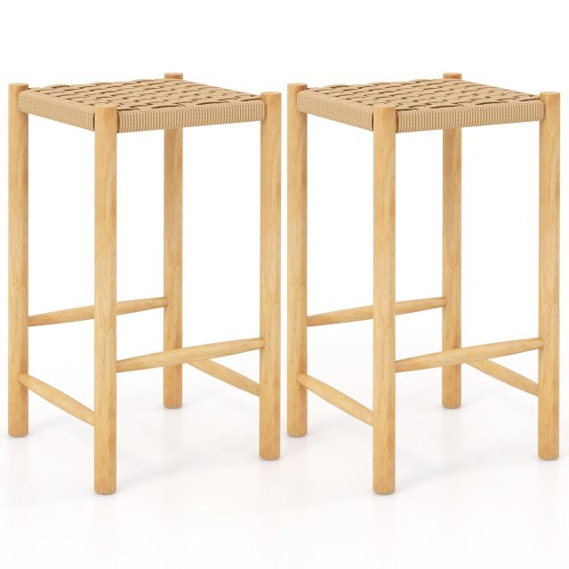 Experience exceptional comfort and style with these 360° swivel bar stools. Designed with skin-friendly PVC leather and soft sponges, the upholstered seats provide a comfortable seating experience. The solid wood construction of these barstools supports up to 330 lbs, ensuring stable and reliable use. Built-in footrests and ergonomic high backrests offer excellent support for extended sitting, making these tall bar stools both functional and comfortable. Additionally, the nailhead trim and natural wood grain add a charming rustic touch to your kitchen island or dining room.