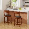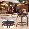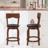 Upgrade your space with our swivel bar stools! These stools feature a 360-degree swivel seat, enabling effortless rotation for better engagement in social settings. The soft padded seats and curved backrests ensure optimal comfort and support during long conversations. Additionally, each stool includes a convenient footrest for added relaxation. Crafted with a solid rubber wood frame, these stools not only provide strong support but also boast long-lasting durability. Ideal for any gathering, these stools combine functionality with a sleek design to enhance your kitchen island, home bar, or pub.
