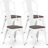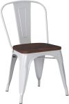 Tolix Style Dining Chairs Industrial Metal Stackable Cafe Side Chair w/Wood Seat