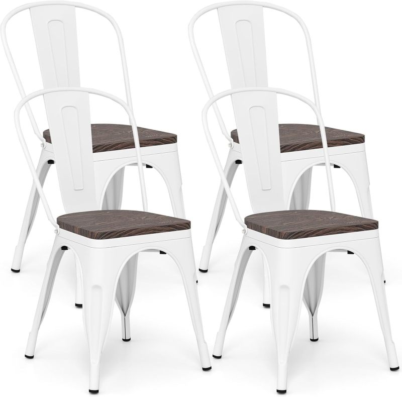 These vintage gun metal chairs afford you the comfort, stylish home furniture choice. Featuring superior metal frame and thick wood seat, these chairs is sturdy enough to hold up to 270 lbs. And each metal chair has a X-brace under the seat that provides additional support and stability. In addition, this chair includes plastic feet pads to protect your flooring and resistant to slippery. Therefore, whether you're using this chair for your kitchen, patio or bistro, it's sure to offer you level up your leisure time quality!