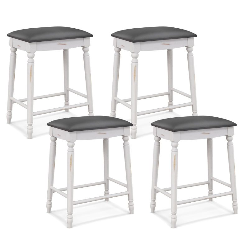 Upholstered Bar Stools Set of 4 24-Inch Backless Counter Height Dining Stools