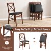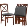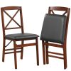 Elevate your dining experience with these folding chairs, blending classic elegance with modern practicality. Crafted from rubber wood and finished in a warm walnut hue, the chair exudes rustic charm while its X-shaped adds a contemporary twist. Designed for versatility, the chair folds effortlessly into a sleek 7-inch profile, ideal for compact storage in apartments and closets. Whether used daily at the dining table or as extra seating for events, its mission-inspired silhouette and neutral tones seamlessly adapt to farmhouse, industrial, or modern decoration.