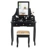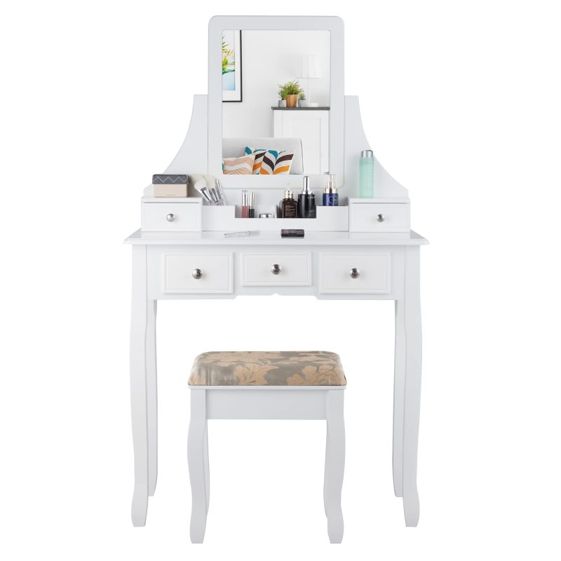Vanity Desk and Cushioned Stool Set with 5 Storage Drawers