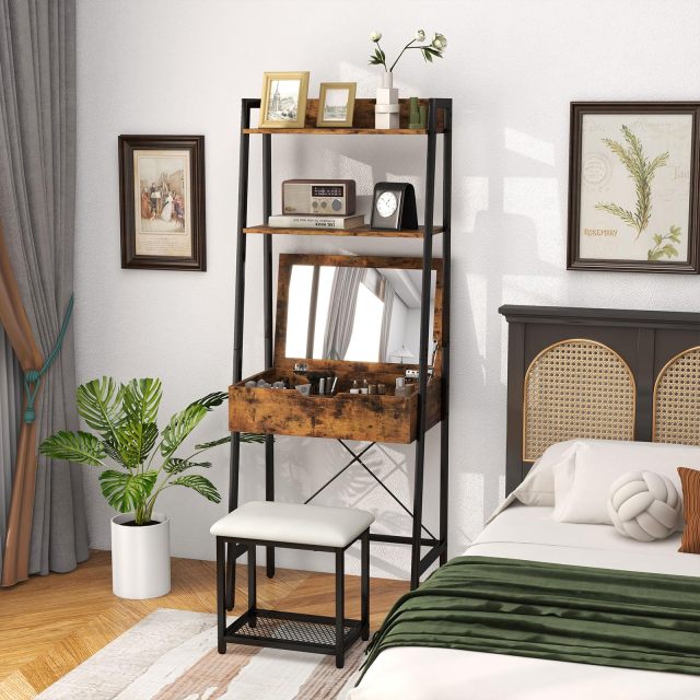 Designed with a flip top mirror, can be used both as a make-up table and as a laptop desk