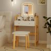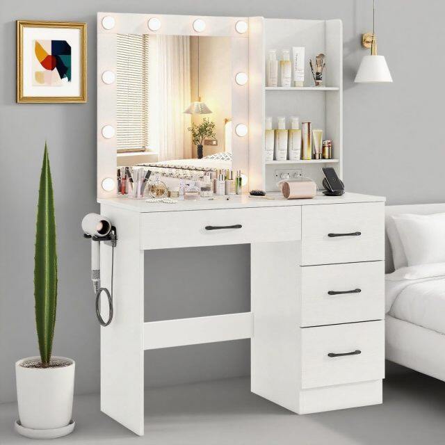 Imagine starting your day with a vanity that’s more than just a piece of furniture—it’s a game-changer for your routine. With 3 adjustable brightness settings, you’ll nail the perfect lighting for makeup, whether you’re prepping at dawn or touching up in the evening, so you always step out feeling confident. No more digging through cluttered drawers: the 1 large drawer, 2 small drawers, and open shelf keep everything from skincare to jewelry neatly sorted, saving you precious time every morning.