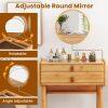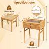 Designed for both style and function, its sophisticated, naturally warm-toned finish brings a touch of refined beauty to any bedroom. Crafted from bamboo material, this vanity offers exceptional strength and stability, ensuring it withstands daily use. The naturally smooth surface is easy to wipe clean and effectively resists light scratches and everyday wear. Enjoy ample organization with the tabletop providing perfect placement for cosmetics and accessories, complemented by well-sized drawers that keep essentials neatly stored yet easily accessible.