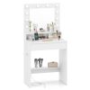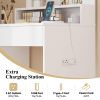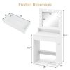 This modern white makeup vanity desk features a lighted mirror with 3 color modes and adjustable brightness, making it ideal for precise makeup application. The spacious tabletop, open shelf, drawer, and bottom rack offer organized storage for your cosmetics, skincare, and tools. Besides, the built-in charging station includes USB, Type-C, and AC outlets, allowing you to power multiple devices at once. With its sturdy frame, anti-toppling kits, and non-slip pads, this compact vanity table stays stable and safe. Plus, the sleek appearance with screw cover stickers makes it a chic addition to any bedroom or small space.