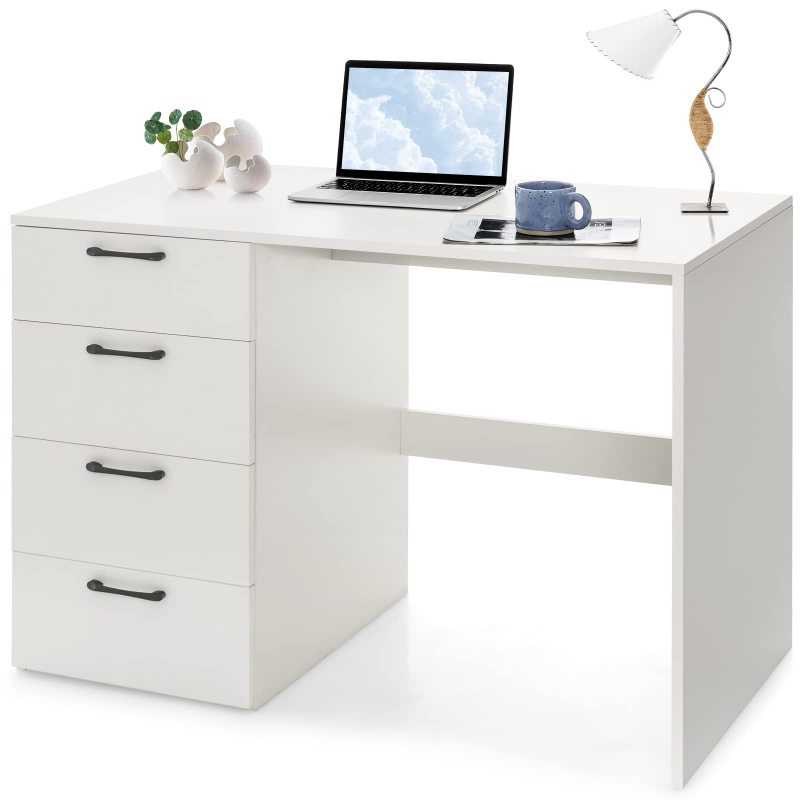 Are you looking for a suitable home computer desk? Then you can't miss this computer desk with storage drawers! This study desk has a sturdy frame that provides excellent stability. The table top can provide a weight capacity of up to 210 pounds, and the desk is scratch-resistant and waterproof. What's more, this computer desk comes with 4 storage drawers to store your daily necessities. And the spacious enough desktop can also accommodate two monitors at the same time. You can put it in the bedroom as a computer desk, or you can use it as a writing desk or storage desk. There is no doubt that this elegant and practical furniture will bring highlights to your room.