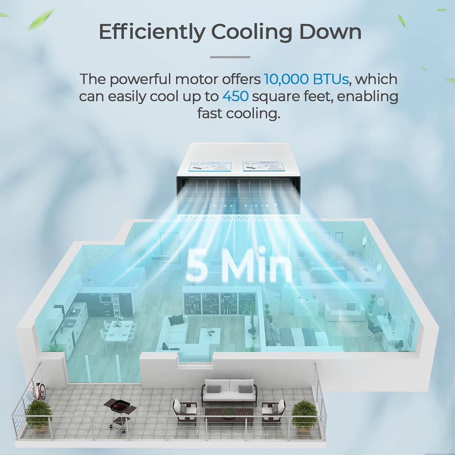 - 🏠 [Cool Large Rooms]: The 10,000 BTU window air conditioner effectively cools your room or office, with its directional air louvers that can blow cold air left, right, up, and down, covering a larger area of up to 450 square feet.