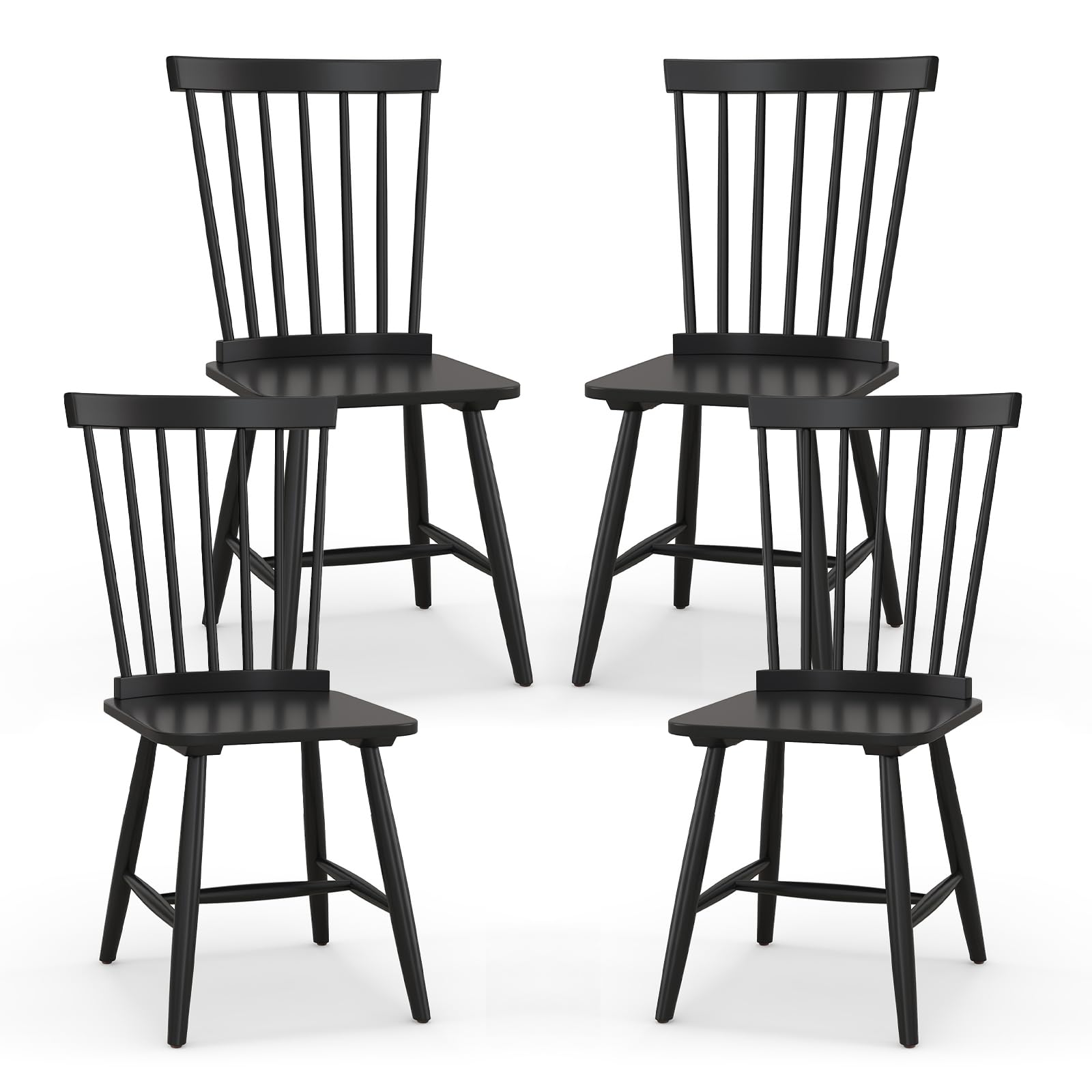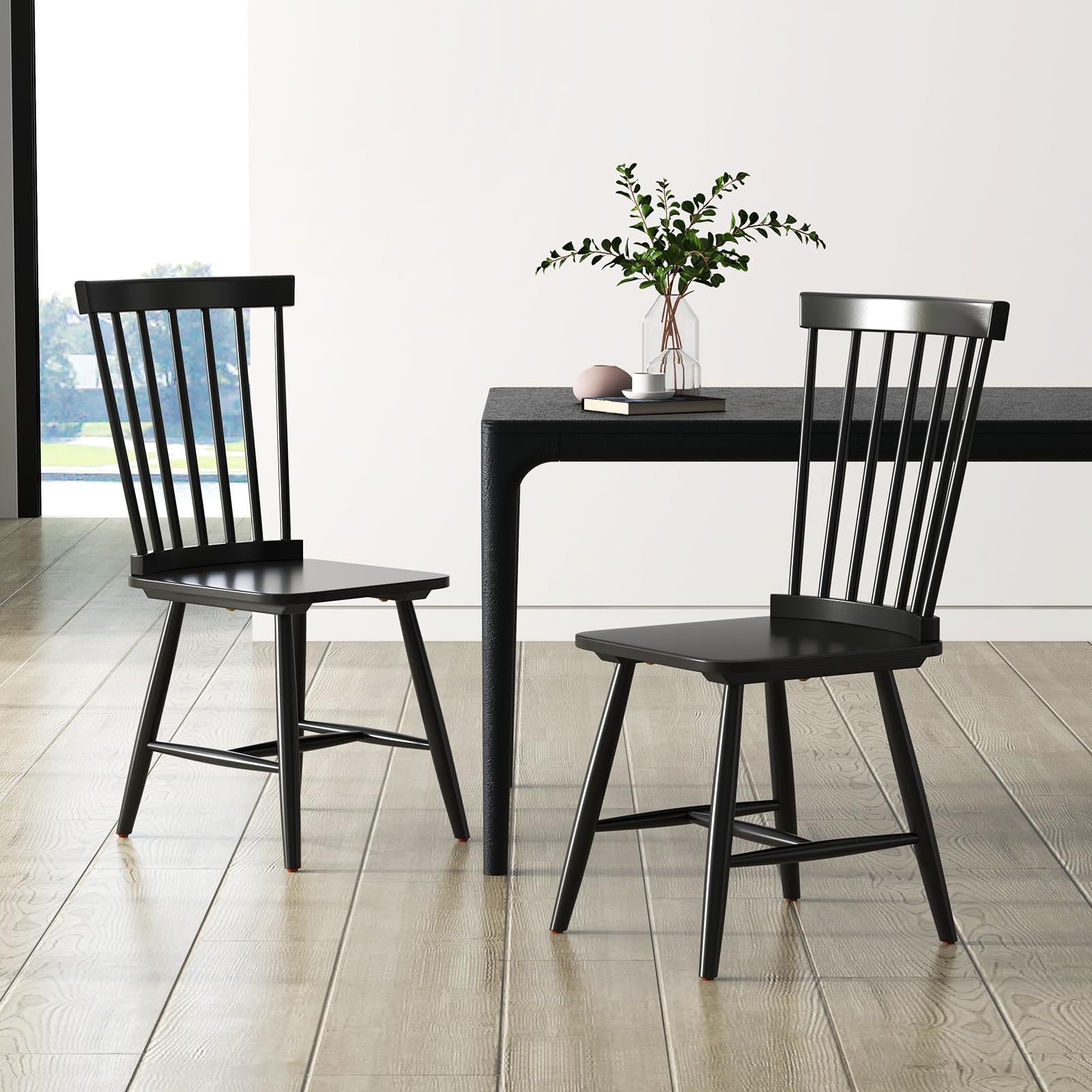 Windsor Dining Chair Set with Spindle Back Spacious Seat Rubber Wood Frame