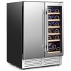 Wine and Beverage Refrigerator, 24 Inch Dual Zone Under Counter Wine Beverage Cooler with Lock