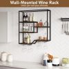 Featuring a smart combination of shelving and glass racks, this hanging liquor rack allows you to conveniently store both your favorite bottles and glasses together, all while freeing up valuable countertop space. Constructed with a sturdy metal frame, the wine bottle storage rack promises stability and long-lasting durability, making it an ideal choice for your kitchen or home bar. Moreover, its industrial waterproof finish not only adds a touch of vintage charm but also ensures easy maintenance, perfectly suited for everyday use. Thanks to its adaptable design, this wall wine rack effortlessly elevates storage capabilities and enhances the overall ambiance of your room.