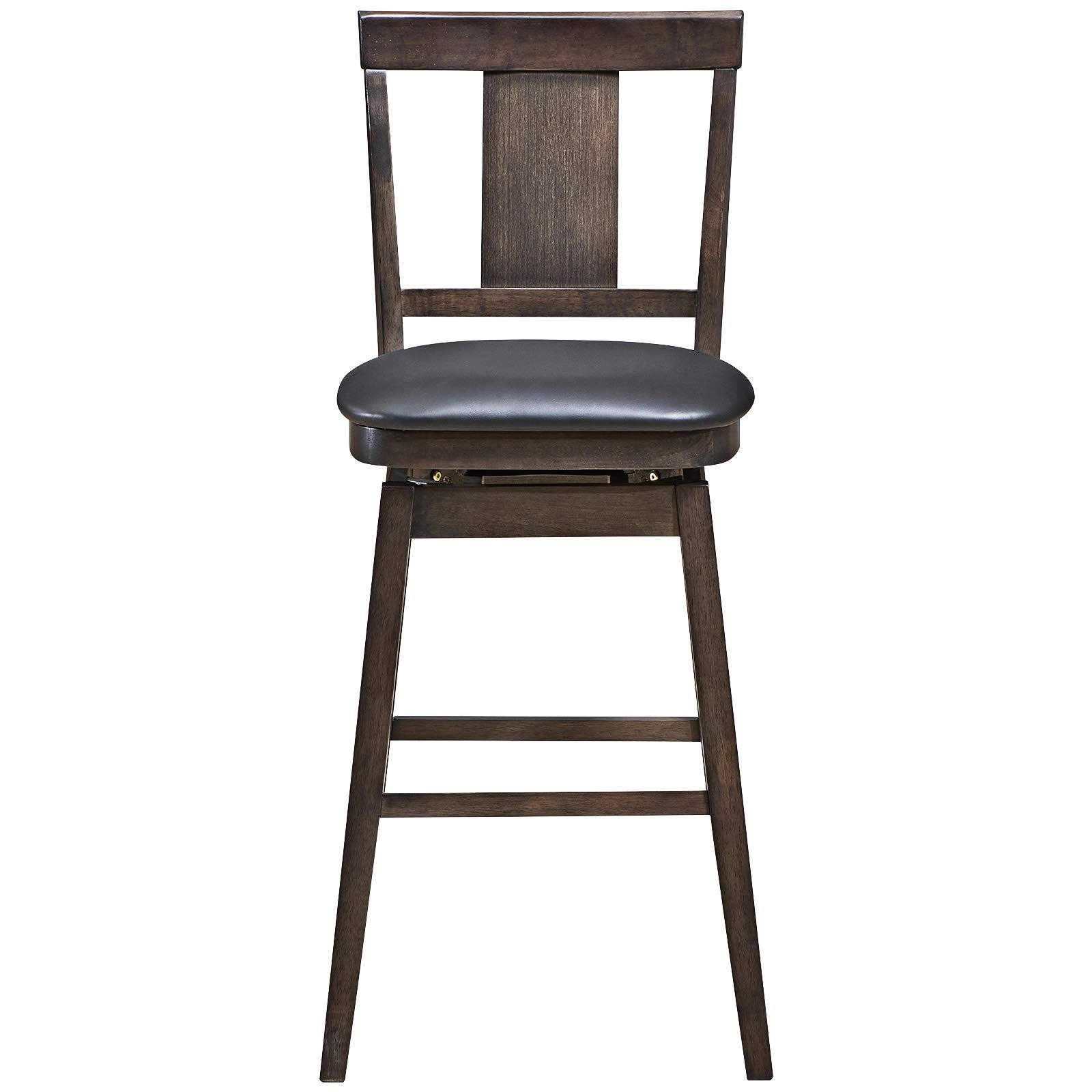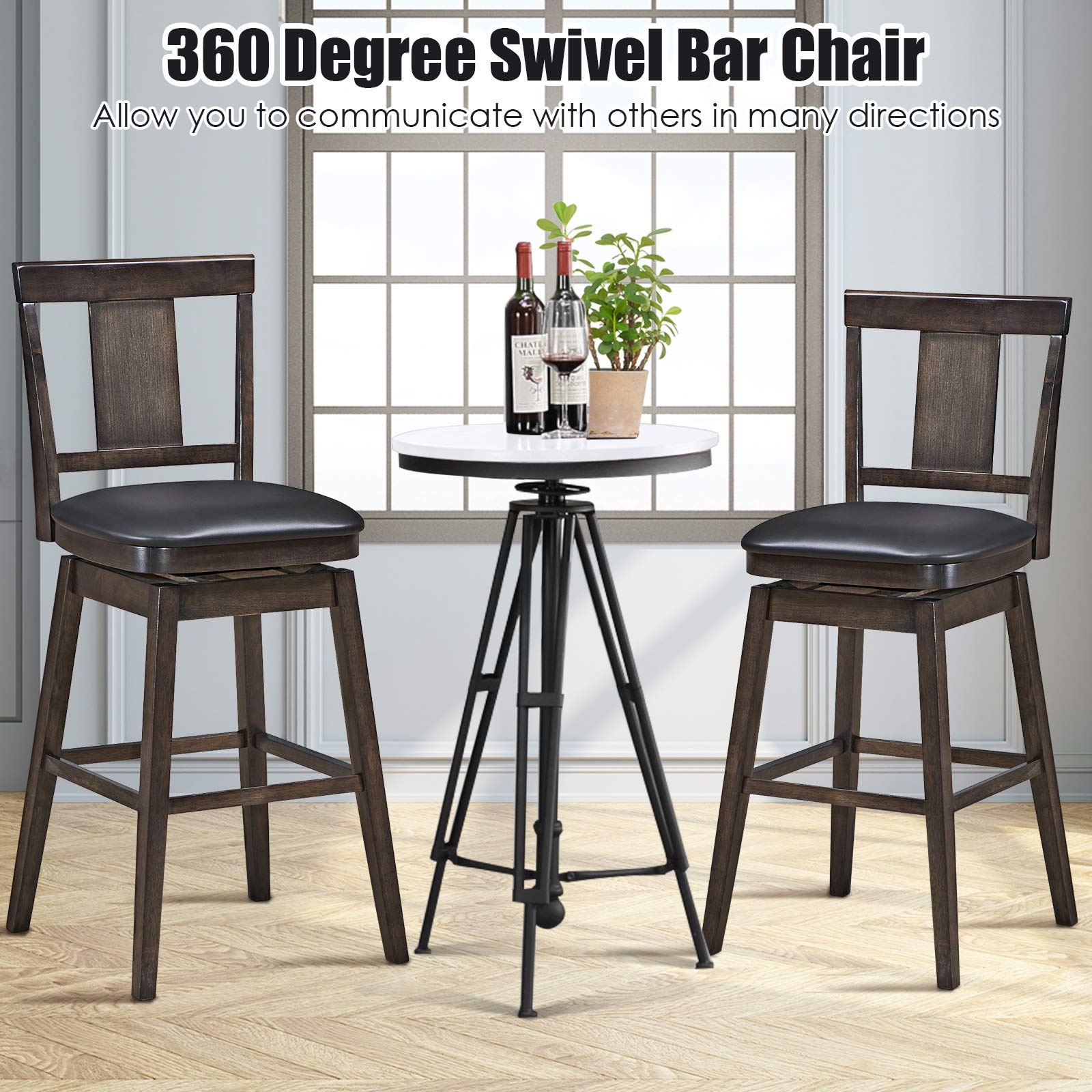Our 29-inch bar stool will bring you a cozy and safe sitting experience in your home! This ergonomically designed bar stool has a wide backrest to support your back and waist, thus making you feel more cozy. It also has a footrest to let your feet stay in a comfortable position. The PVC leather surface is durable while the wooden legs provide it with the strong loading capacity of 264 lbs. Featuring 360-degree swivel design, these bar stools give you the freedom of flexible movement, so you can communicate with others in any direction. And it does not take up much space, so you can place it either in the kitchen or in the living room. Pubs and small coffee shops are also ideal places to put this bar stool. Take this bar stool to your home and you will find it perfect for your daily life!