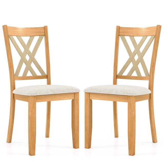 Wooden Dining Chairs Set of 2/4 Solid Rubberwood Frame Kitchen Side Chairs w/Upholstered Padded Seat he4-1