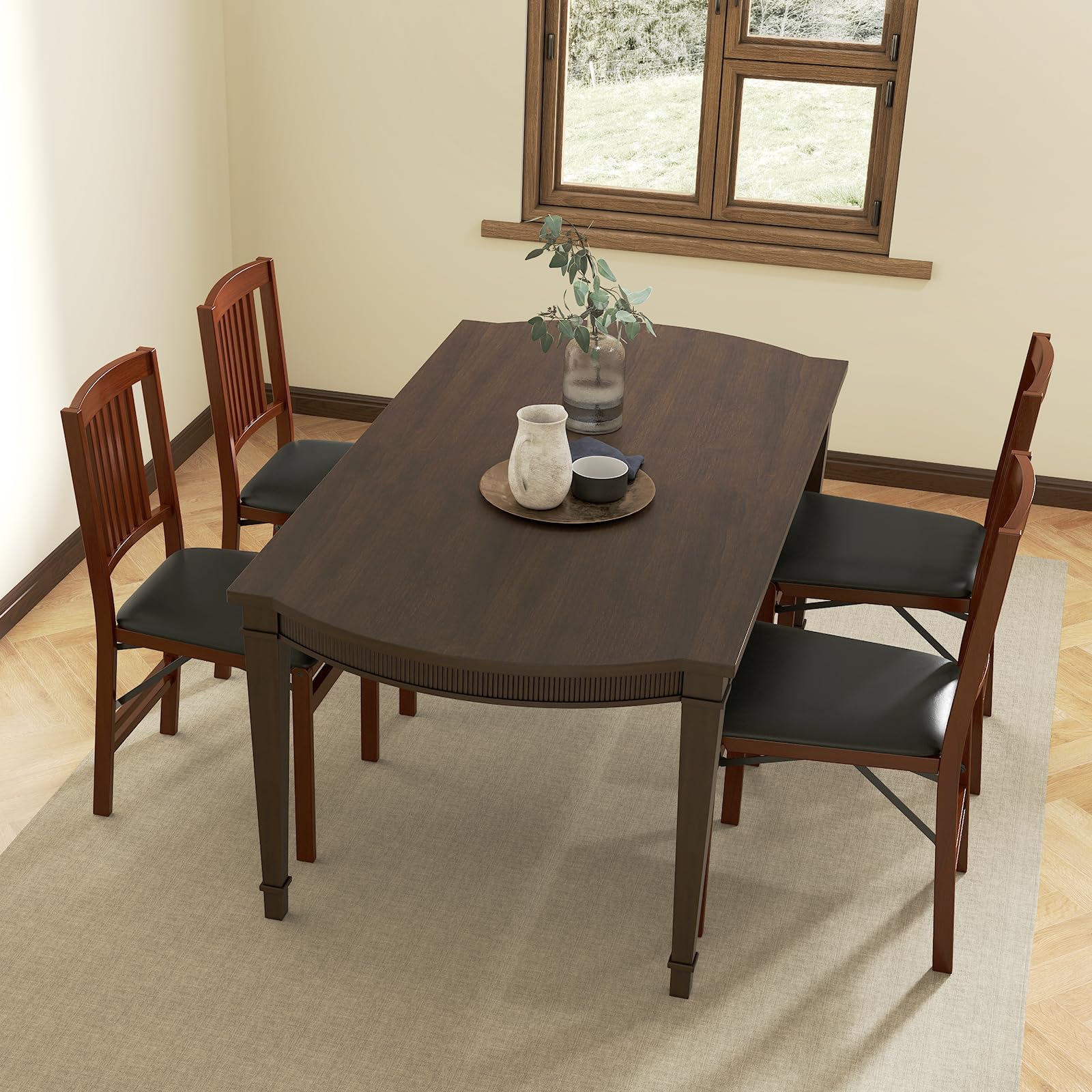Equipped with flexible hinge system, the dining chair set can be easily folded and stored away when not in use. In addition, each chair features soft sponge padded seat and ergonomic slatted backrest. This thoughtful combination provides optimal comfort and support during meals or while entertaining guests. Built to last, these kitchen side chairs boast a solid rubber wood frame and support up to 400 lbs. No assembly required! The folding chairs allow you to instantly add seating to your dining room, kitchen or living room.