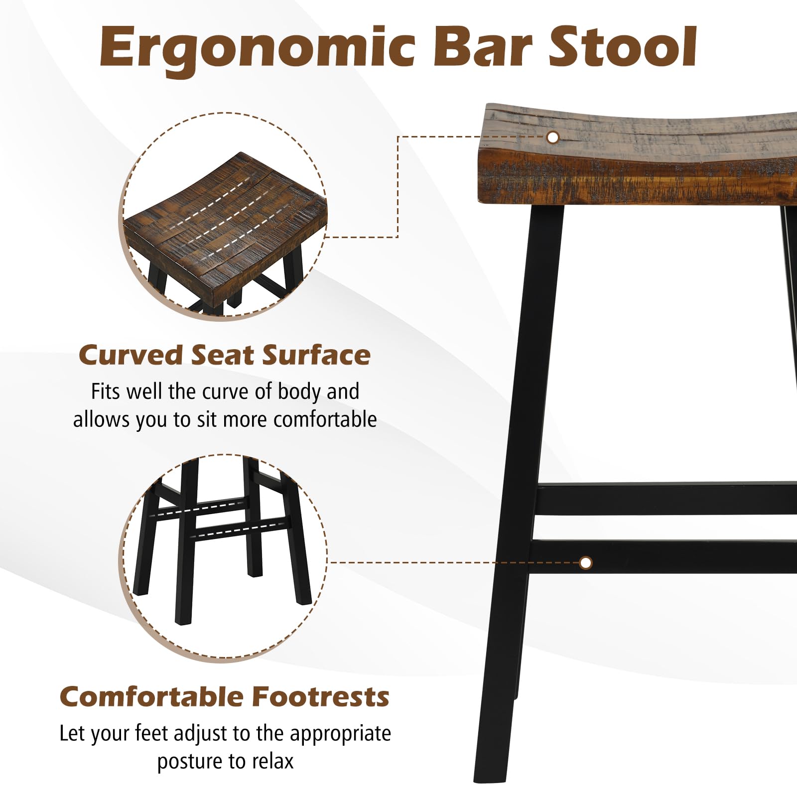 - [Curved Seat Surface] Equipped with a 17.5” x 13” wide seat, this 24” bar stool offers you ample sitting space.The curved acacia wood seat surface fits well the curve of body and allows you to sit more comfortable.