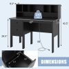 Upgrade your workspace with this functional writing desk! The home office desk features a large desktop, 5-cubby storage hutch, and 2 deep drawers, which provide you with plenty of extra space to place computers, smartphones, books, etc. to keep the working area clean and neat. With 2 extra power outlets and 2 USB ports built into the desktop, this computer desk will be handy to help to charge your multiple electronics. Additionally, the white desk is modern yet compact, which will be a nice addition to your home or office.